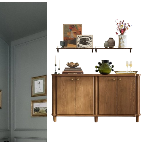 A.R. FORMAL ROOM. A collected, art-driven space where sculptural silhouettes and vintage-inspired forms meet layered texture and expressive color. Playful yet refined, the room balances bold artwork and curated furnishings to create a setting that feels energized, personal, and effortlessly elevated.